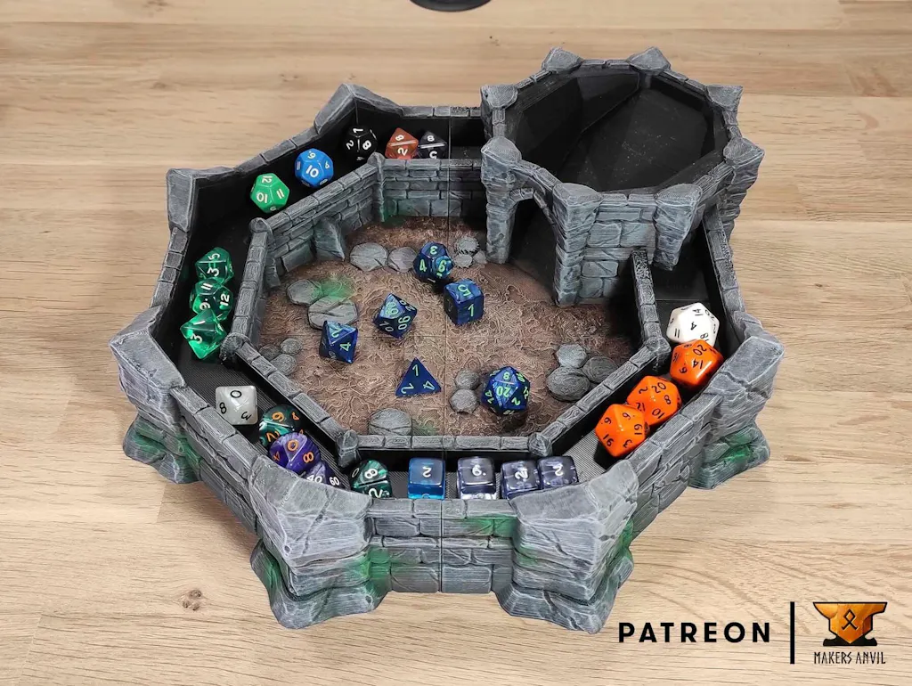 Tour de dés Dice Arena imprimée en 3D | Makers Anvil | Paysage fantastique imprimé en 3D pour jeux de rôle | Terrain de construction miniature TTRPG