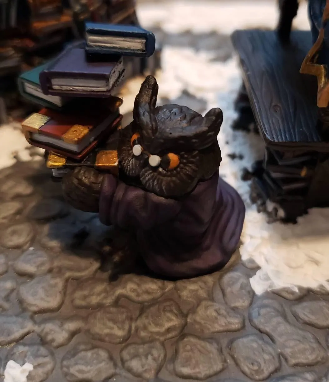 Miniature de bibliothécaire hibou d'Epic 'N' Stuff. Idéal pour les jeux de rôle sur table. Parfait pour peindre ou à utiliser tel quel.