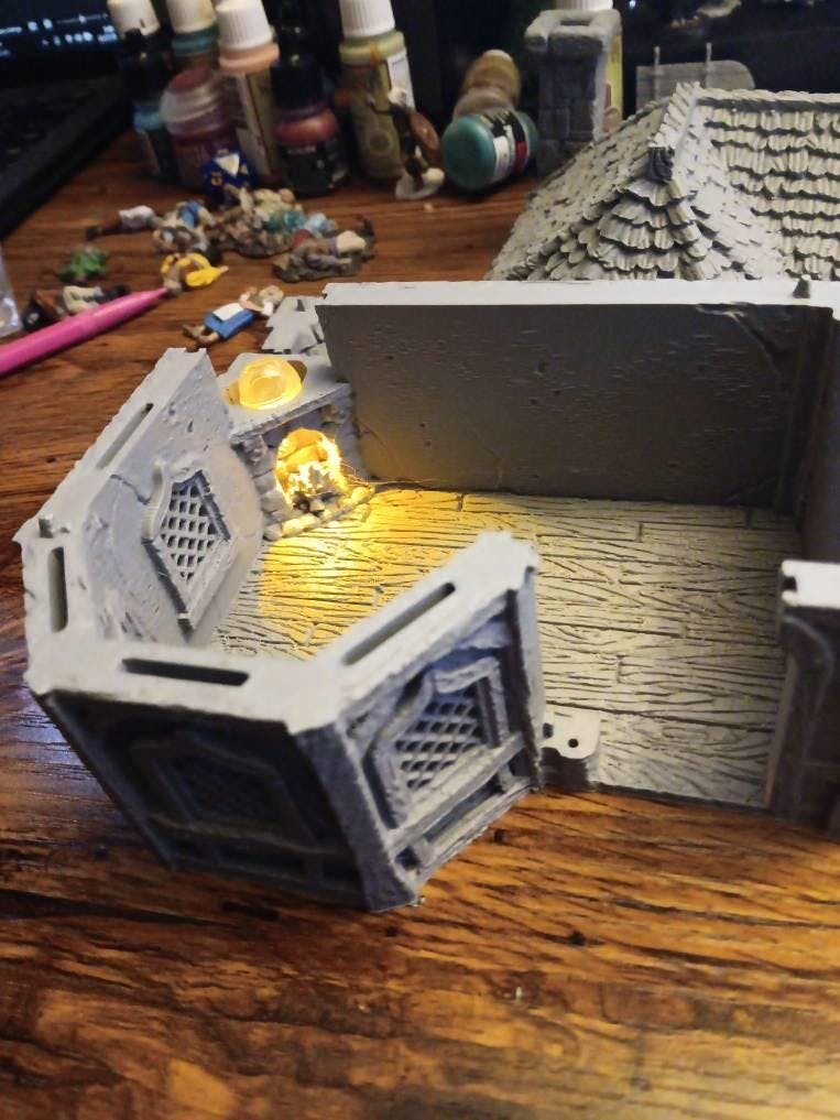 Sizes 28mm and 32mm can be played inside! Place your miniature in the building and get immersed.