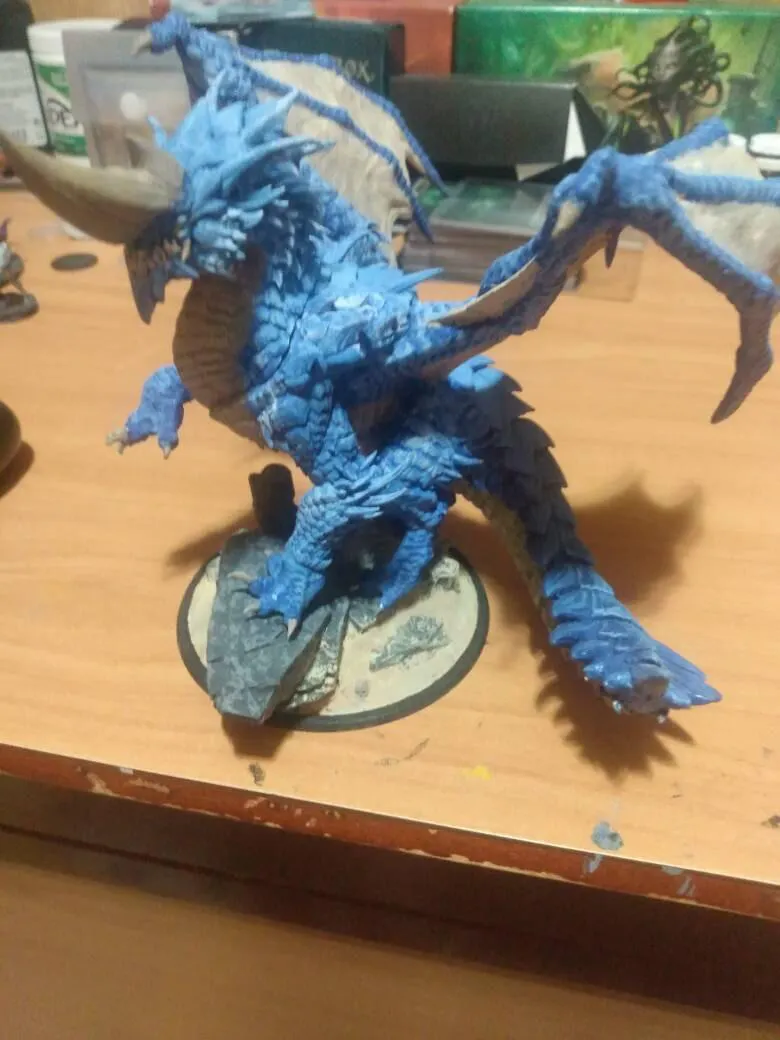Blue Dragon miniature from Rescale Miniatures. Ideal for tabletop RPG games. Perfect for painting or to use as is.